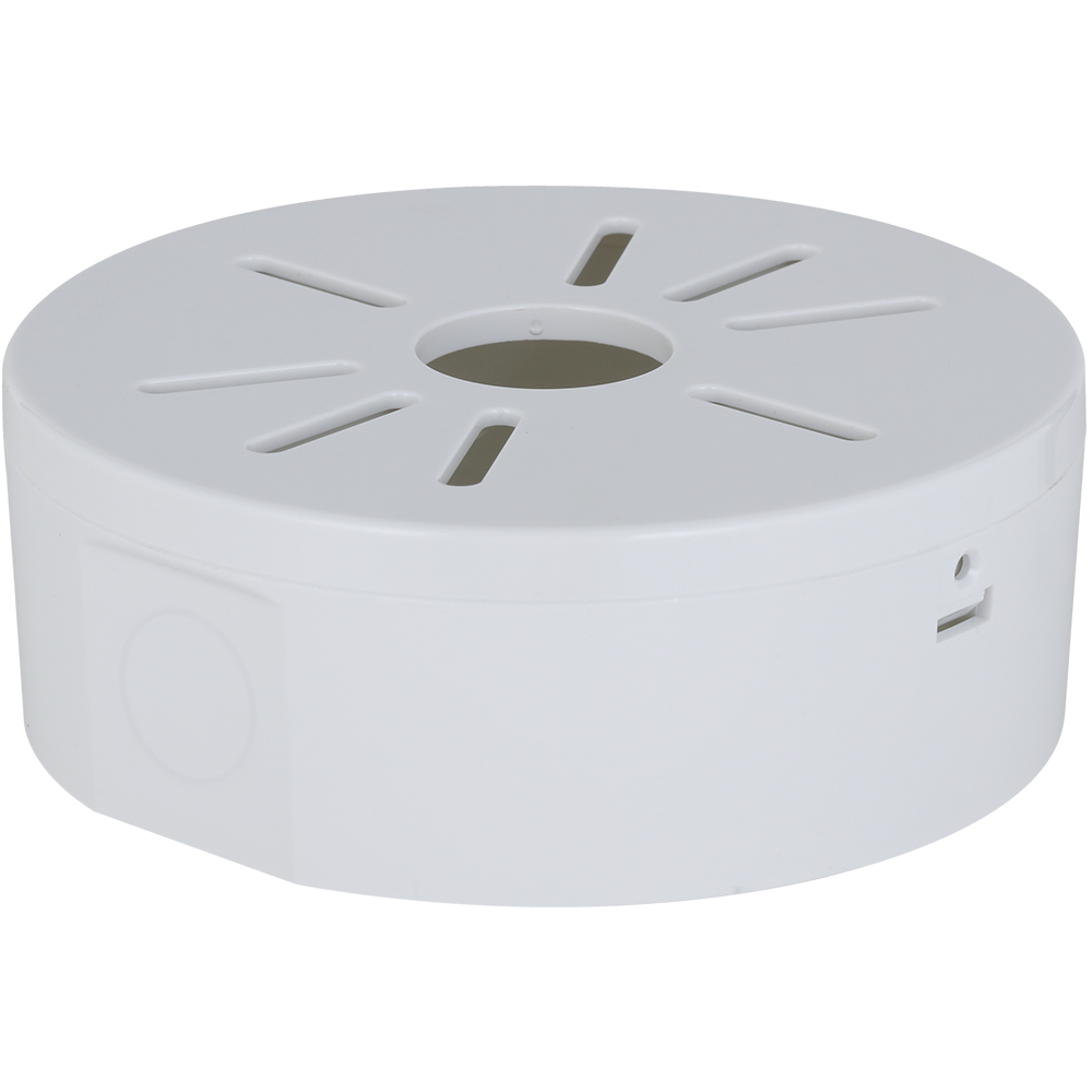 Die Anschlussdose ist eine praktische Lösung zur sauberen Kabelführung bei der Kameramontage im Innenbereich. Hergestellt aus flammhemmendem PC-Material (V2-Klassifizierung), überzeugt sie durch ihre einfache Handhabung, flexible Montagemöglichkeiten und ein durchdachtes Design mit seitlichen und unteren Leitungsauslässen.
