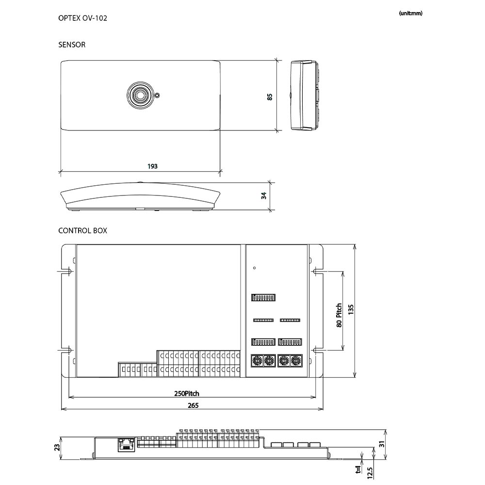 Abmessungen Detektionseinheit: 193 × 85 × 34 mm